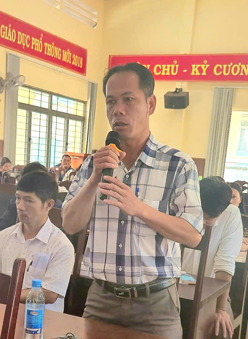 Ảnh: Thầy Nguyễn Huy Thọ – Phó Bí thư Đảng bộ, Phó Hiệu trưởng nhà trường phát biểu tại hội nghị